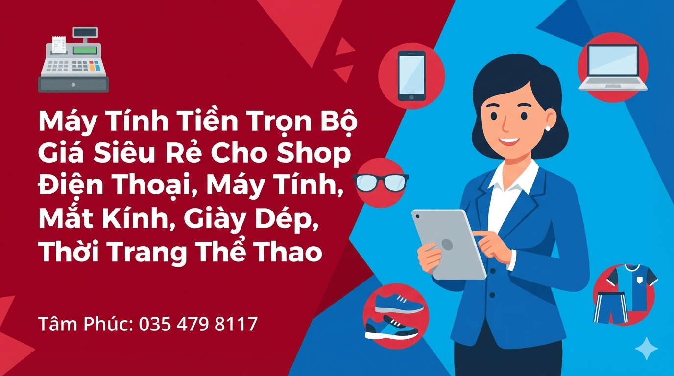 Năm 2025-2026, theo Nghị định 70/2025/NĐ-CP, shop điện thoại, máy tính, mắt kính, giày dép, thời trang thể thao bắt buộc sử dụng trọn bộ máy tính tiền siêu rẻ kết nối hóa đơn điện tử để kê khai thuế, tránh phạt từ 10-50 triệu đồng. Tính tiền thủ công, ghi sổ tay dễ sai sót, thất thoát doanh thu. Tâm Phúc – đơn vị hỗ trợ hơn 128.000 chủ shop toàn quốc – mang đến trọn bộ máy tính tiền siêu rẻ (chỉ từ 12 triệu) dành riêng cho shop điện thoại, máy tính, mắt kính, giày dép, thời trang thể thao tại TP.HCM, Hà Nội, Cần Thơ, Đà Nẵng, Bình Dương, Đồng Nai… để quản lý bán hàng tự động, tăng doanh thu 40-80% và tuân thủ pháp luật.