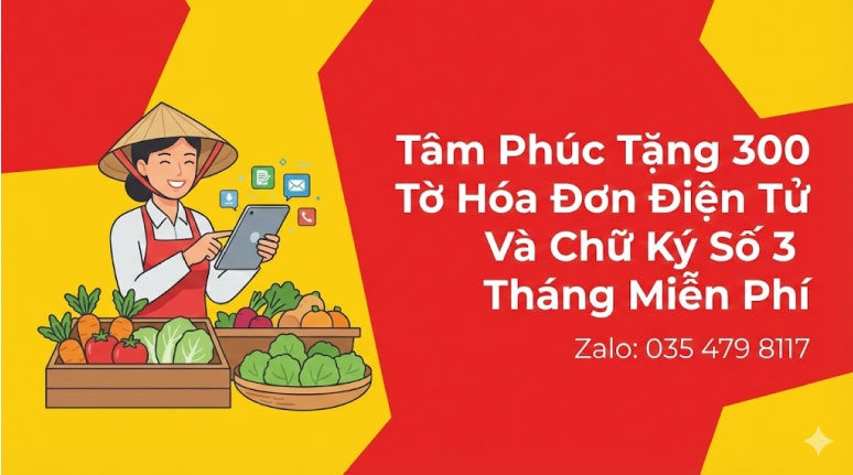 Năm 2025-2026, theo Nghị định 70/2025/NĐ-CP, hộ kinh doanh bắt buộc sử dụng hóa đơn điện tử và chữ ký số để tránh phạt từ 10-50 triệu đồng. Nhưng đừng lo chi phí! Tâm Phúc – đơn vị hỗ trợ hơn 128.000 hộ kinh doanh toàn quốc – đang tặng 300 tờ hóa đơn điện tử miễn phí + chữ ký số 3 tháng miễn phí cho tiểu thương tại TP.HCM, Hà Nội, Cần Thơ, Đà Nẵng, Bình Dương, Đồng Nai… để chuyển đổi số dễ dàng, tiết kiệm và hiệu quả.