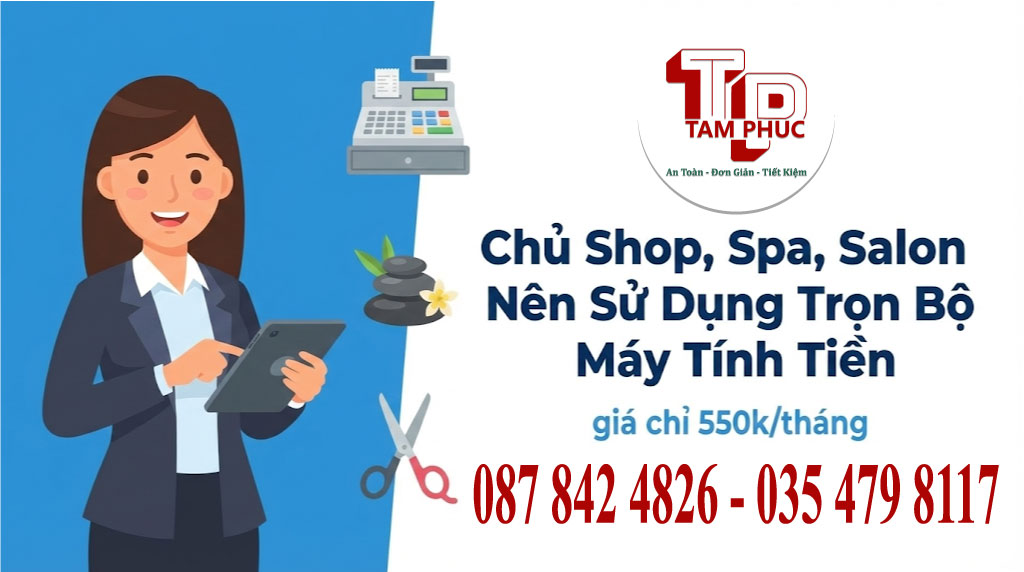 Năm 2026, theo Nghị định 70/2025/NĐ-CP, chủ shop, spa, salon bắt buộc sử dụng máy tính tiền kết nối hóa đơn điện tử để kê khai thuế, tránh phạt từ 10-50 triệu đồng. Quản lý thủ công dễ sai sót, thất thoát doanh thu và mất khách. Trọn bộ máy tính tiền & phần mềm quản lý kinh doanh từ Tâm Phúc – đơn vị hỗ trợ hơn 128.000 chủ shop toàn quốc – chỉ 550k/tháng giúp chủ shop, spa, salon tại TP.HCM, Hà Nội, Cần Thơ, Đà Nẵng, Bình Dương, Đồng Nai… quản lý tự động, tăng doanh thu 50-80% và tuân thủ pháp luật.